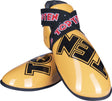 Popis: Do chrániče s rozepnutým suchým zipem posuňte nohu. Po usazení chrániče uchopte suchý zip a křížem přetáhněte přes nárt chrániče, pak pokračujte dolů pod chodidlo a opět křížem z druhé strany až na patu, kde zajistíte suchým zipem. Poté do gumových pásků umístěných na vnitřní straně chrániče prostrčte prsty. Doporučuje se palec zvlášť do jedné gumy a ostatní 4 prsty do druhé gumy. Prodává se v páru a nezáleží,, zda se používá na pravou nebo levou stranu. Upevněte chránič tak, aby během pohybu nebo cizím zapříčiněním nedocházelo k samovolnému posunu chrániče nebo jeho spadnutí. Nedostatečně upevněný chránič neposkytne řádnou ochranu.