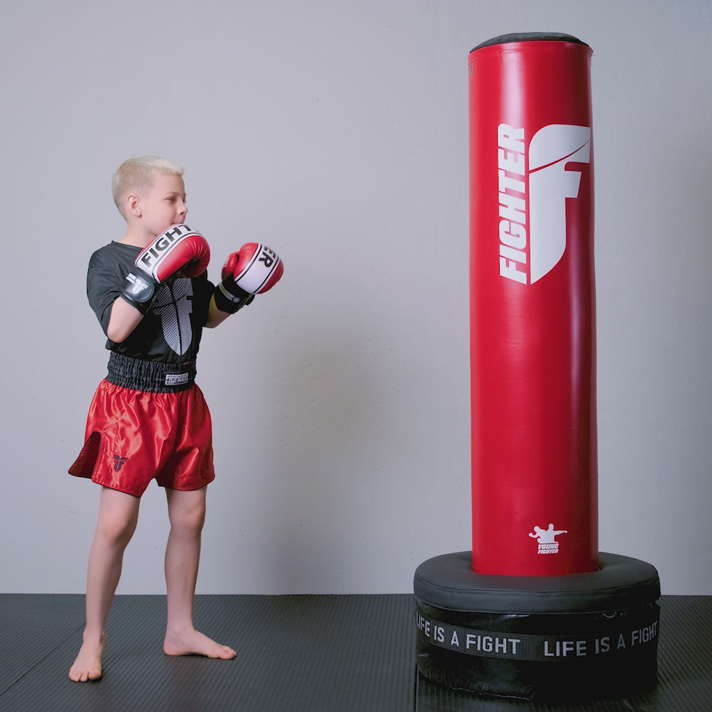 Volně stojící boxovací pytel Fighter Young červená/bílá je navržen speciálně pro děti a mládež. Je určen k co nejširšímu použití, jak v tělocvičně tak i doma. Je skvělý pro cvičení různých sportů od boxu a kickboxu až po karate nebo taekwondo.